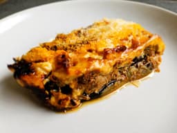 Milk, Eggplant, Unsalted butter (Milk), Parmesan (Milk), Flour (Wheat), Onion, Tomato, Dry oregano, Tomato paste, Olive oil, Salt, Cinnamon, Panko (Wheat), Lamb shoulder, Bay leaves