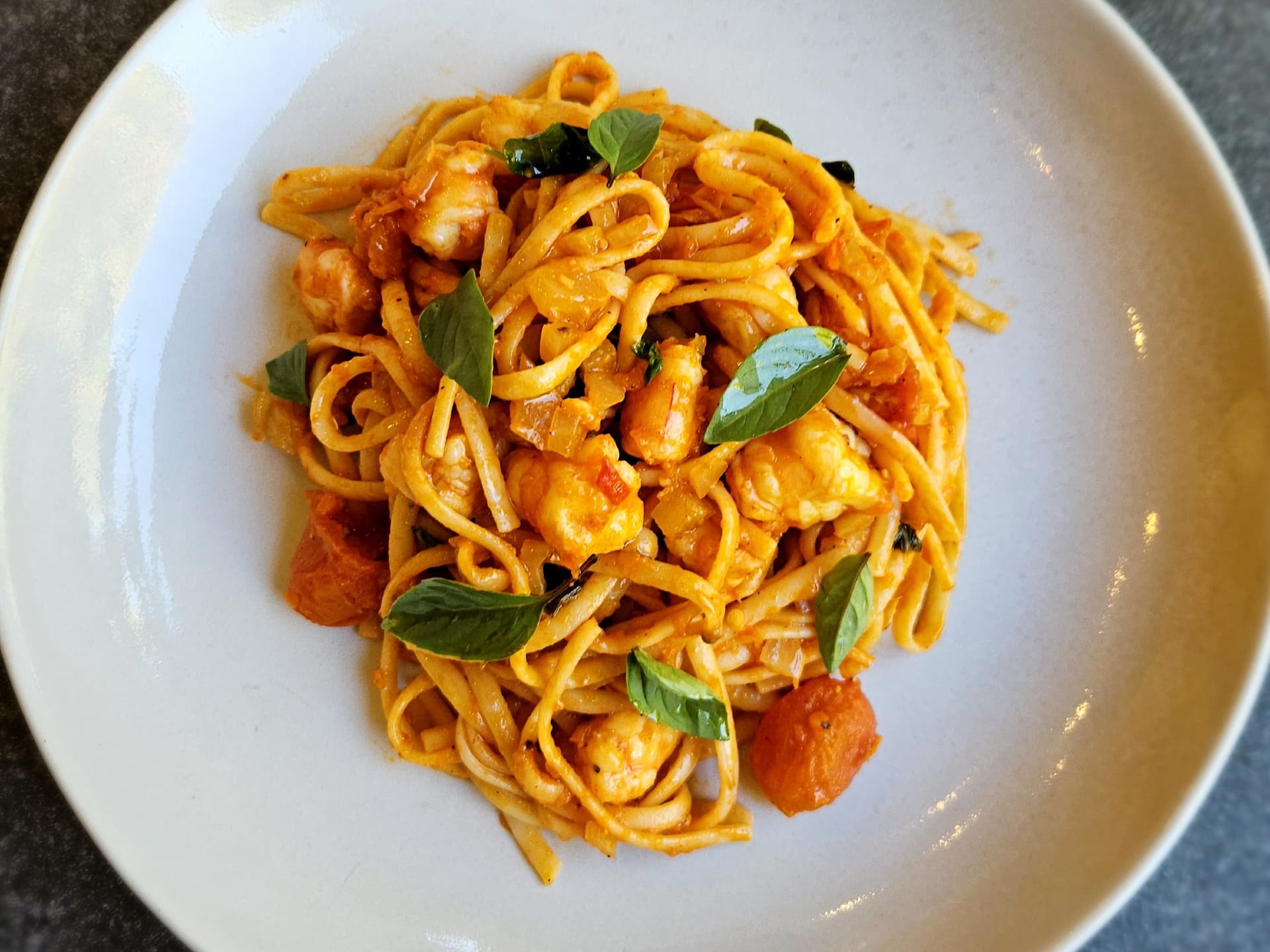 Mooloolaba Prawn is tossed through garlic, chilli, lemon, capers, fennel & fresh tomatoes before mixing into linguine pasta and finished with fresh basil.