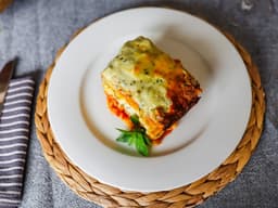 Kent pumpkin, Ricotta Lasagne Mix [Baby spinach Triple washed, Onion, Olive oil, Parmesan Cheese Grated (Milk), Garlic, Sea salt, Pepper white ground], Bechamel [Milk - Cows, Unsalted butter (Milk), Flour plain (Wheat), Sea salt, Pepper white ground], Tomato sugo, Italian egg pasta (Wheat), Mozzarella cheese (Milk), Pesto NG (Milk, Pine nut)
