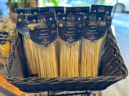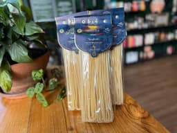 Antiche Spaghetti Pasta di Gragnano IGP Made with 100% drum semolina wheat flour and pure spring water sourced from Mount Lattari, Antiche Spaghetti di Gragnano made using a traditional extrusion process protected by the European Union that creates beautiful spaghetti with a firmer bite and toothier texture that is uniquely Pasta di Gragnano.