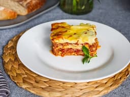 Slow Braised Beef Bolognaise [Crushed tomato, Beef chuck mince, Chicken stock NG, Onion, Tomato paste, Carrots, Worcestershire sauce (GF), Garlic, Parmesan Cheese Grated (Milk), Thyme, Oregano, Parsley, Bay leaves], Mornay Sauce [Milk - Cows, Cheddar cheese (Milk), Flour plain (Wheat), Unsalted butter (Milk)], Italian egg pasta (Wheat), Olive oil, Mozzarella cheese (Milk)
