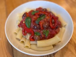 A Mediterranean-inspired pasta sauce featuring ripe tomato sugo, sweet roasted capsicum, fragrant fresh basil, and Ligurian olives. This rich, aromatic sauce is simmered with garlic and herbs, offering a perfect balance of savory, smoky, and herbal flavors to elevate any pasta dish - FROZEN