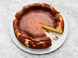 A deeply caramelised, crustless cheesecake with a softly set, custardy centre. Rich but not heavy, gently tangy and finished with that signature burnt top - intentionally rustic, beautifully simple, and best served chilled or at room temperature.