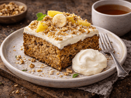 Cream Cheese Frosting [Icing sugar, Cream cheese (Milk), Unsalted butter (Milk), Vanilla extract, Sea salt], Canned pineapple, Flour plain (Wheat), Banana, Walnuts, Vegetable oil, Eggs, Castor Sugar, Dessicated coconut (Sulphites), Coconut flakes, Vanilla extract, Baking powder, Bicarb soda, Cinnamon ground, Allspice, Sea salt