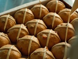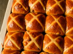 A traditionnal hot cross bun, made from a slightly enriched dough, for a soft and fruity bun. Naturally fermented over a two dough system for a better shelf-life and softer texture. Using a blend of sultanas, candied lemon & oranges, as well as the most beautiful freshly milled spices, our hot cross buns are definitively a crowd pleaser !