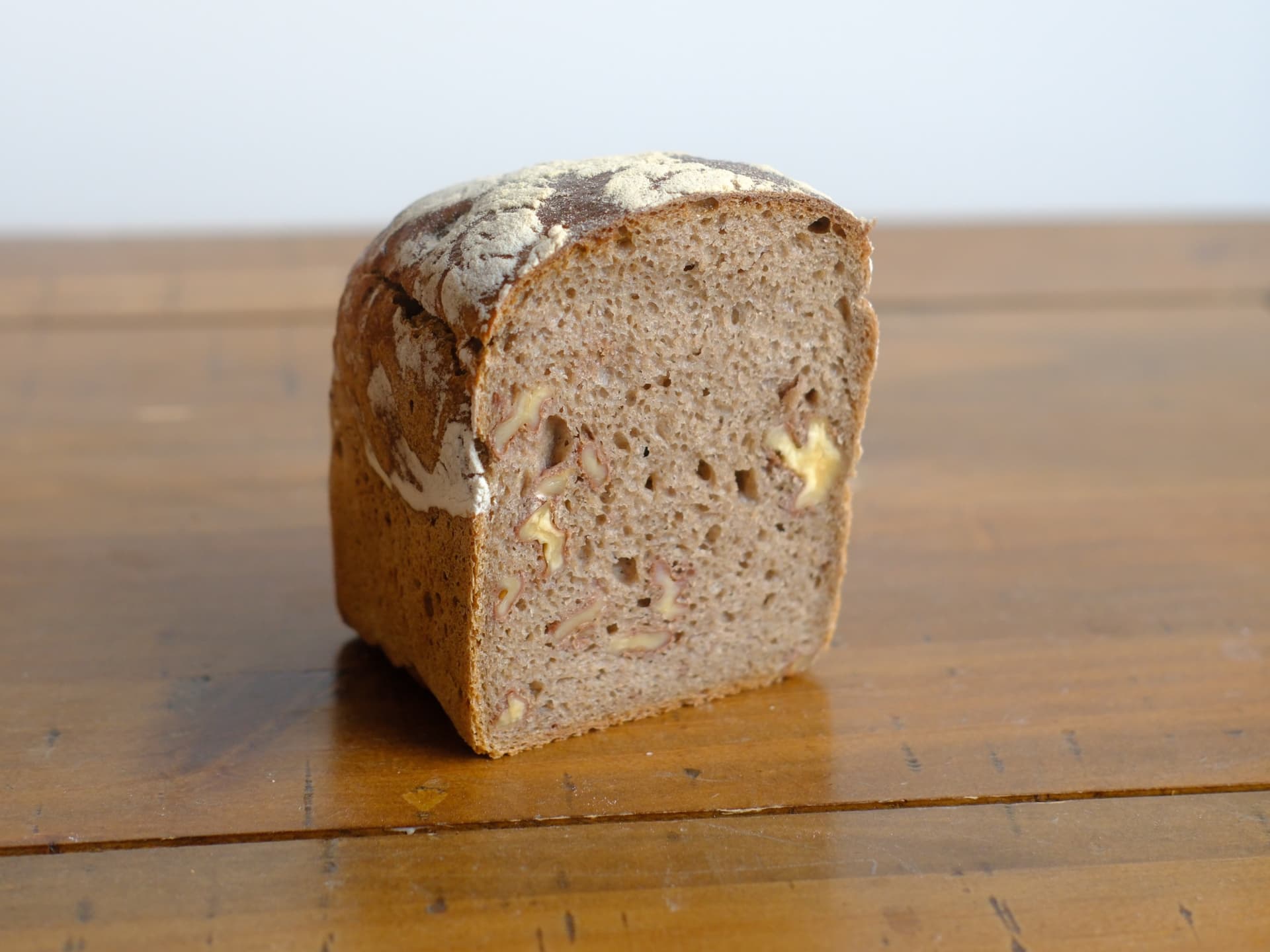 The perfect cheese companion, the depth of rye blends beautifully with the sweetness of walnuts. We use a metal recipe, which is a blend of 50% heritage white flour and 50% of lightly sifted rye flour which makes it a lighter loaf than some of our other rotation ryes.