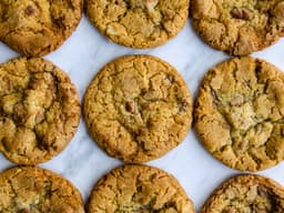 Flour (GF), Nuttelex Butter, Sugar, White, Almond Meal, Sugar, Brown, White Chocolate (SW), Nuts, Macadamia, Milk, Almond, Vanilla Essence Imitation
