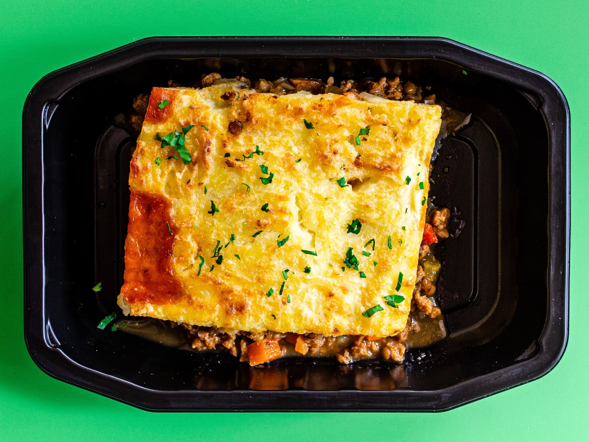Comes frozen. Microwave from frozen. A vegan take on your favourite winter dish. Soy based mince with loads of veggies and a creamy mashed potato topping. Enjoy this baked taste of home!