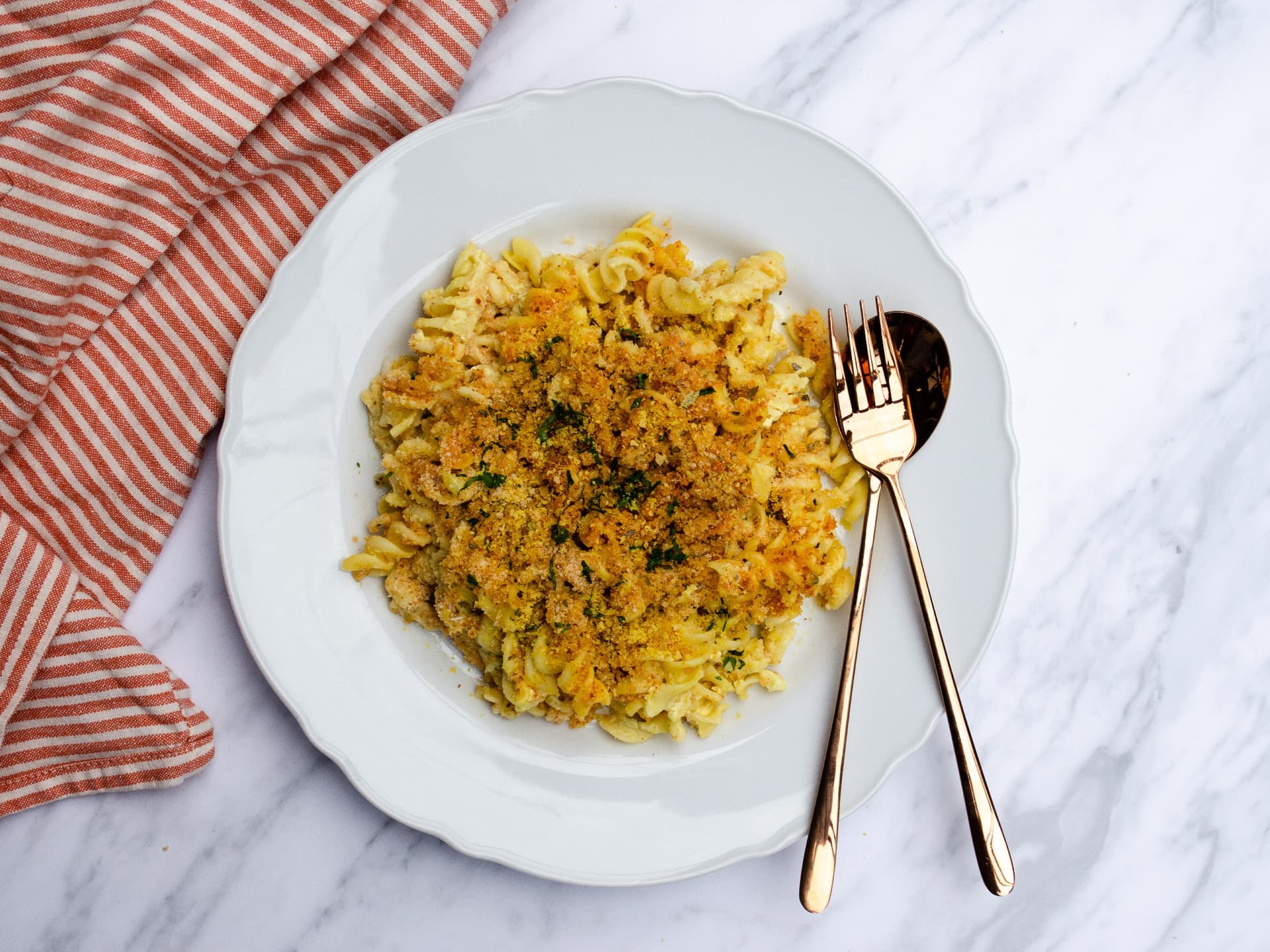 Comes frozen. Microwave from frozen. Traditional style vegan carbonara, with a tummy soothing twist. Made from a creamy soy milk sauce with crispy tofu bacon and fresh parsley. Free from garlic and onion.