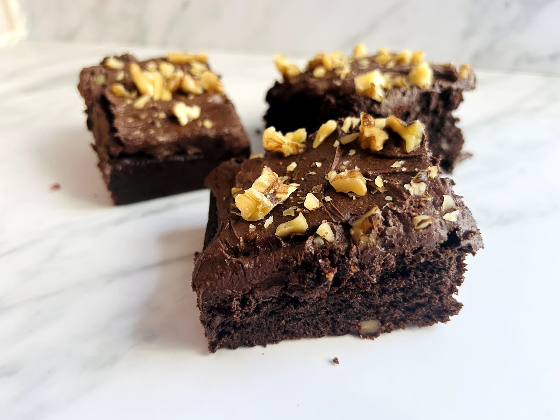 NEW LARGER BROWNIES! A decadent fudgey brownie with dark chocolate chunks and a death-by-chocolate frosting. Comes frozen for a quick microwavable treat!