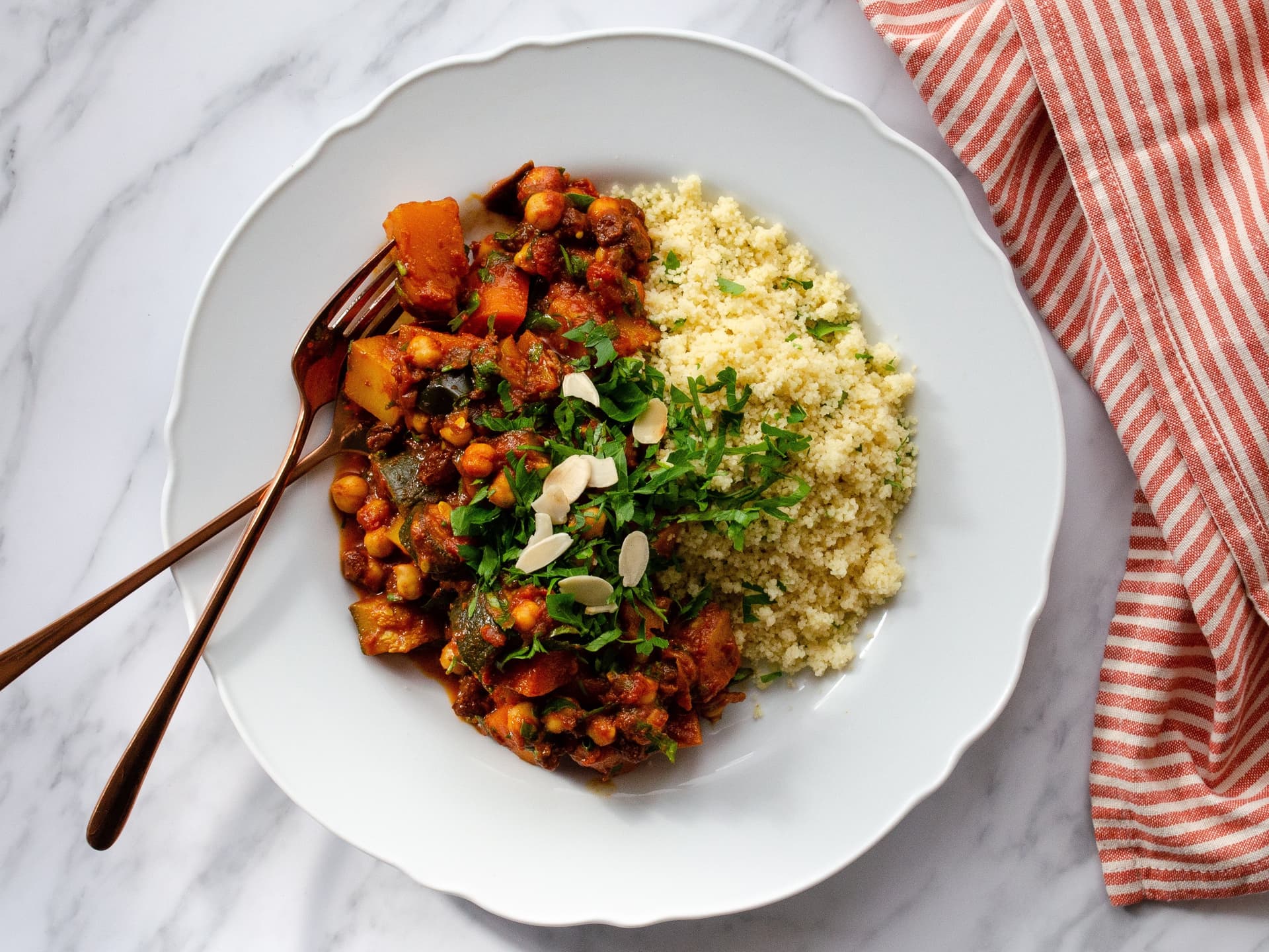 Comes frozen. Microwave from frozen. A low fodmap (official certification pending) take on a traditional favourite. A plethora of vegetables cooked in a heady aromatic spice mix, a rich umami sauce of Moroccan flavours, mixed in with hearty chickpeas and fluffy couscous.