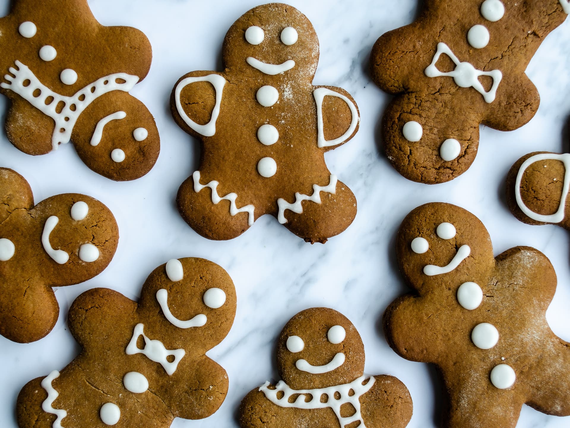 A rich spiced vegan gingerbread with notes of cinnamon and ginger in a soft cookie, decorated with royal icing