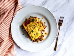 Pie Mince [Lentils, Brown, Water, Mushrooms, Carrot, Textured Vegetable Protein (Soy), Onion, Brown, Frozen Peas, Celery, Tomato Paste, Oil, Olive, Tamari (GF) (Soy), Cornflour, Garlic (Crushed), Stock Powder, Beef, Stock Powder, Beef Style, Rosemary (Dried), Thyme (Dried), Salt, Sea, Black pepper, Bay Leaves], Potato Topping [Potato, White, Milk, Soy, Nutritional yeast, Salt, Pepper]