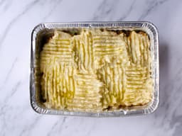 A vegan take on your favourite winter dish. Soy based mince with loads of veggies and a creamy mashed potato topping. Enjoy this baked taste of home! Comes in an oven safe tray for you to cook at home! Serves 2-3 people.