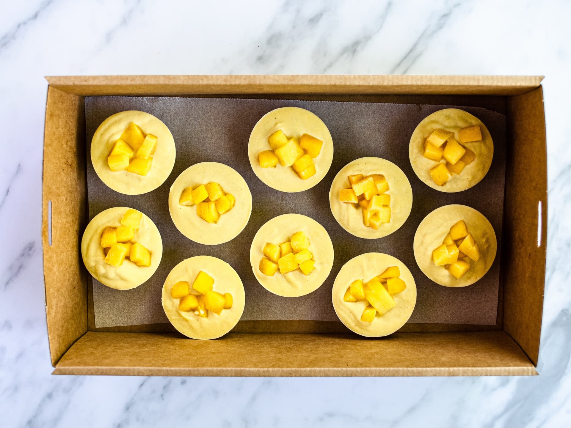 Mini bite sized muffins. Comes in a box, ready to serve!