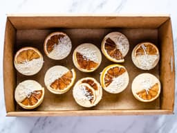 Lemon Cheesecake Filling [Nuts, Cashew, Maple Syrup, Coconut Cream, Lemon Juice, Oil, Coconut, Lemon Zest], Lemon Cheesecake Base [Almond Meal, Dates, Coconut, Desiccated (Sulphites), Salt], Lemon Cheesecake Decoration [Lemon, Dehydrated, Coconut, Desiccated (Sulphites)]