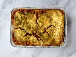Flavourful roasted vegetable and tofu ricotta lasagne. Frozen, ready for you to cook at home in the oven. Serves 2.