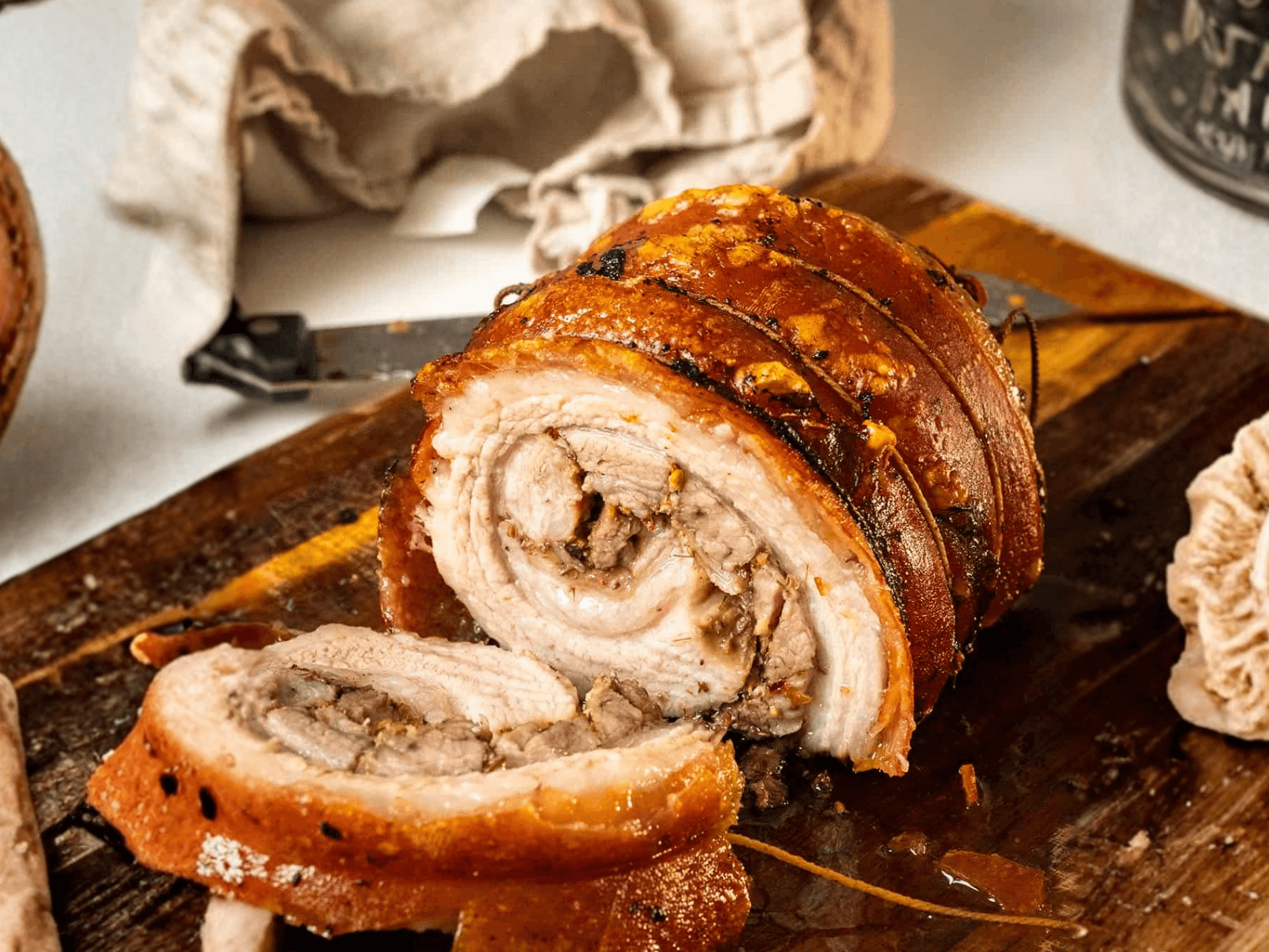 It's back! Bring something truly special to your festive table this year with our certified free-range porchetta - a stunning centrepiece that’s full of flavour and quality. A customer favourite from years past, seasoned simply with salt, cracked black pepper, fresh garlic and rosemary, allowing the natural richness of the meat to shine. This porchetta comes to you UNCOOKED with its own step-by-step instruction card, so you can roast it to golden perfection at home - crisp crackling and all. Minimal effort, maximum flavour. For the ultimate finish, pair it with our house-made salsa verde - bright, zesty and absolutely packed with fresh herbs, anchovy, capers and lemon. It cuts through the richness perfectly and elevates every bite. Available in 1, 2 or 3kg portion sizes, this certified free range porchetta will be the hero on your Xmas table. (1kg of uncooked porchetta serves approx. 4-5 people at the Xmas table). All sizes are approximate.