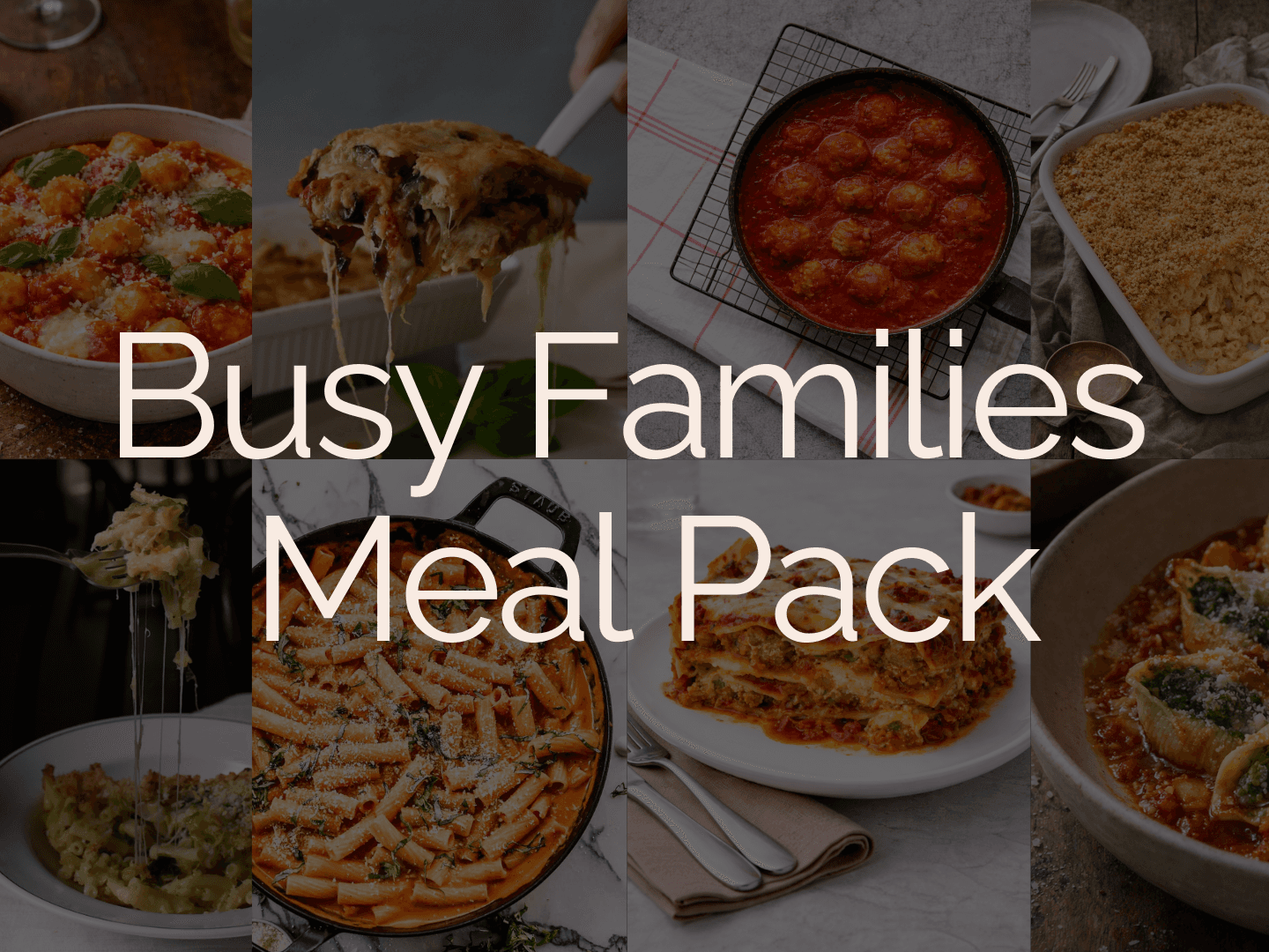 12-18 meals + 2 sides - full schedule? We got you! Our Busy Families Pack includes 3 large family meals and 2 sides, featuring Marco’s elevated three cheese mac'n'cheese with slow-cooked leeks, Rigatoni Pomodoro in a tomato sauce, and classic family favourite, slow-cooked Spaghetti Bolognese. It's all fresh pasta, of course!