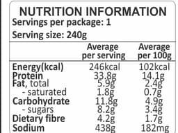 Embark on a culinary adventure with our Chef-made BBQ Sauce Seasoned Chicken Breast served with Pumpkin Mash and Peas—a symphony of flavors that promises to tantalize your taste buds and leave you craving more. Picture succulent chicken breast, expertly seasoned and glazed with our signature BBQ sauce, ensuring each bite is bursting with smoky sweetness and savory goodness. With a generous 33.8 grams of protein, just 11.8 grams of carbs, and only 246 calories per serving, this dish offers a satisfying and nutritious meal that’s perfect for any occasion. Indulge in a culinary experience that celebrates the best of flavors and textures—it’s a dining delight you won’t soon forget.