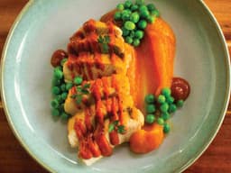 Chef made BBQ Sauce Chicken Breast, Pumpkin Mash, Peas Protein 33.8 Carbs 11.8G