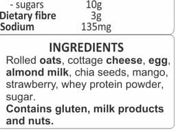 Cottage cheese (Milk), Protein powder (whey) (Milk), Rolled oats, Almond milk, Whole eggs