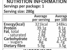 Silverside, Corn, Cheese, Fritters, Relish, Cali Mash Protein 39.1G Carbs 22.1