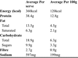 Pork, Carrots, Green beans, Light cheddar cheese (Milk), Gravox (Milk, Soy), Reduced salt vegetable stock (Wheat), Celery, Ketchup with less sugar and salt, Brown sugar, White vinegar, Garlic, Cloves, Paprika, Dijon mustard, Fresh coriander, Onion powder, Dried oregano, Chilli powder, Bay leaves, Worcestershire sauce (Wheat, Fish)