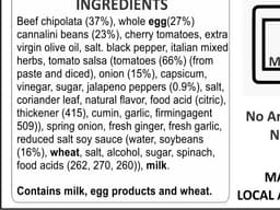 Beef chipolata, Cannellini beans, Tomato salsa, Cherry tomatoes, Spinach, Whole eggs, Extra virgin olive oil, Salt, Pepper, Italian mixed herbs
