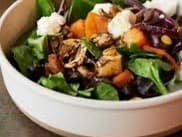 Roasted vegetables, fresh spinach and herbs and a yoghurt, honey and tahini dressing.