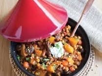 Slow cooked Moroccan Lamb Tajine with dates and fragrant spices. Served with steamed Basmati rice and minted yoghurt for a complete meal.