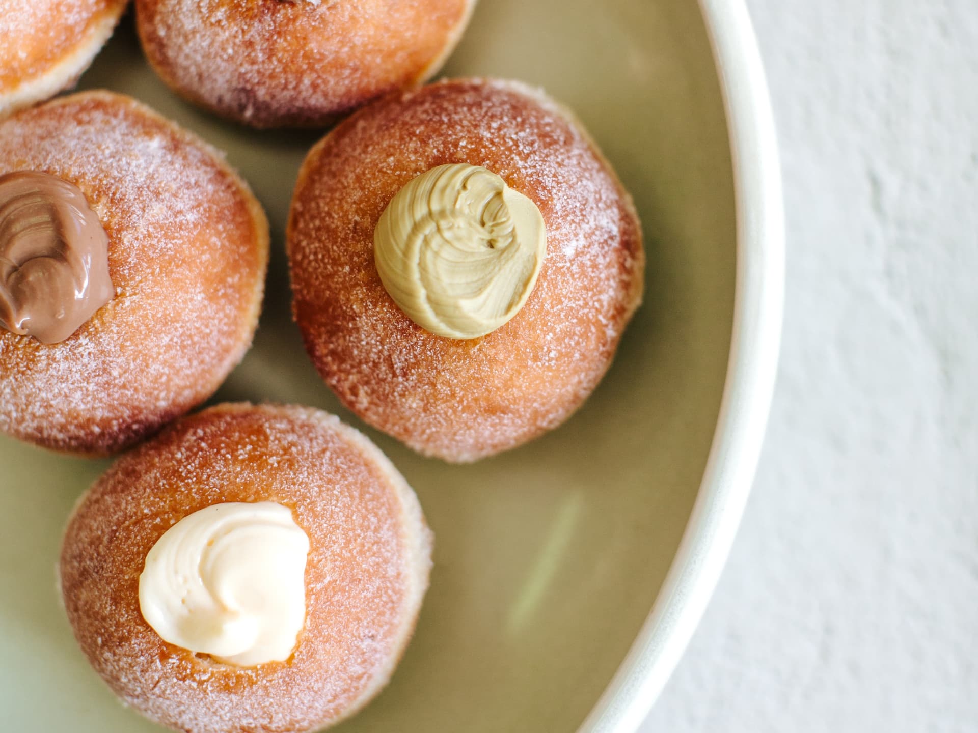 Slow-proofed yeasted doughnuts made fresh for you. 6 pack with mixed flavours of raspberry jam, custard, and salted caramel.