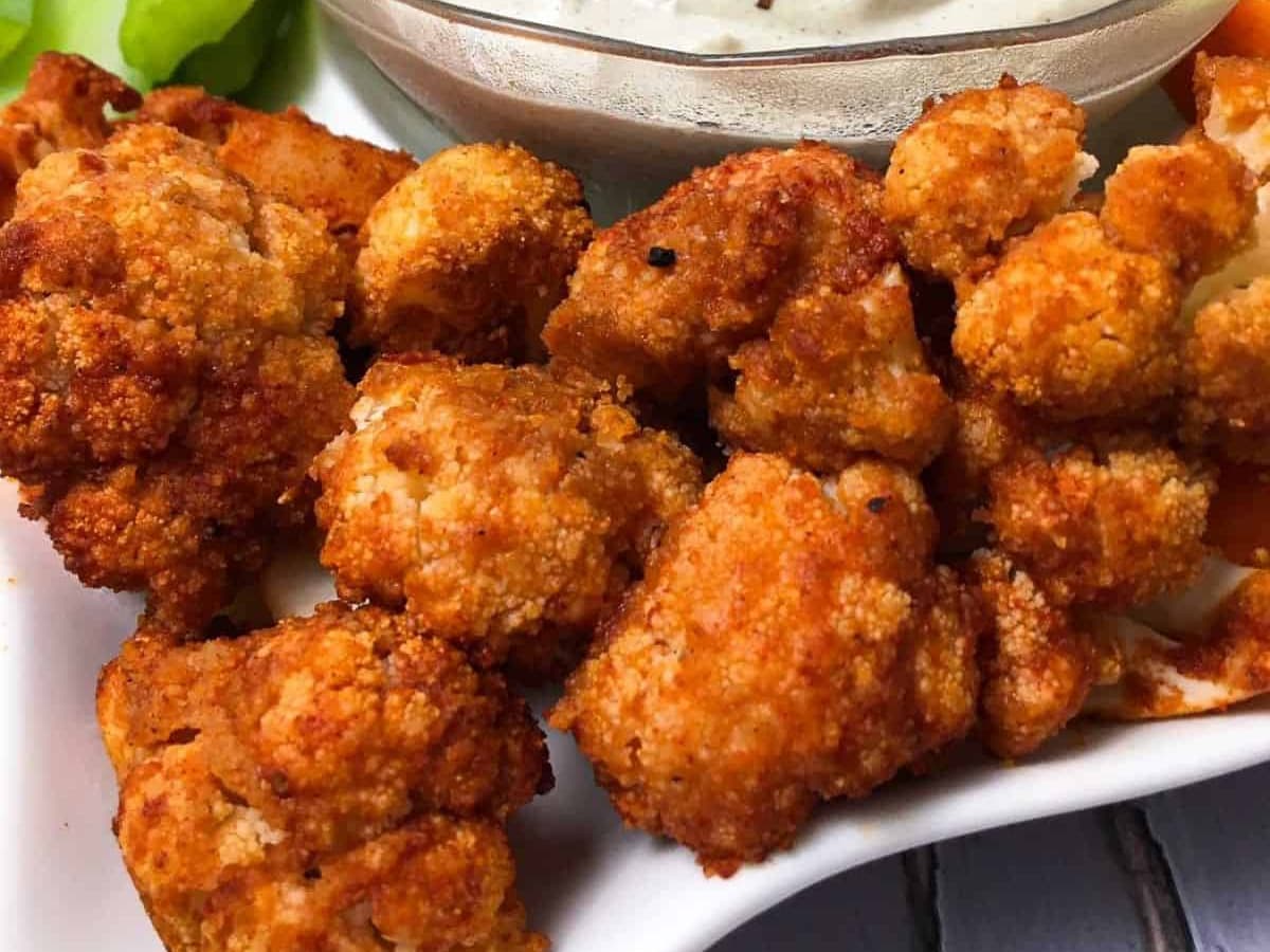with Gorgonzola Dipping Sauce. Deliciously golden and crunchy spiced cauliflower with a mouth-watering dipping sauce.
