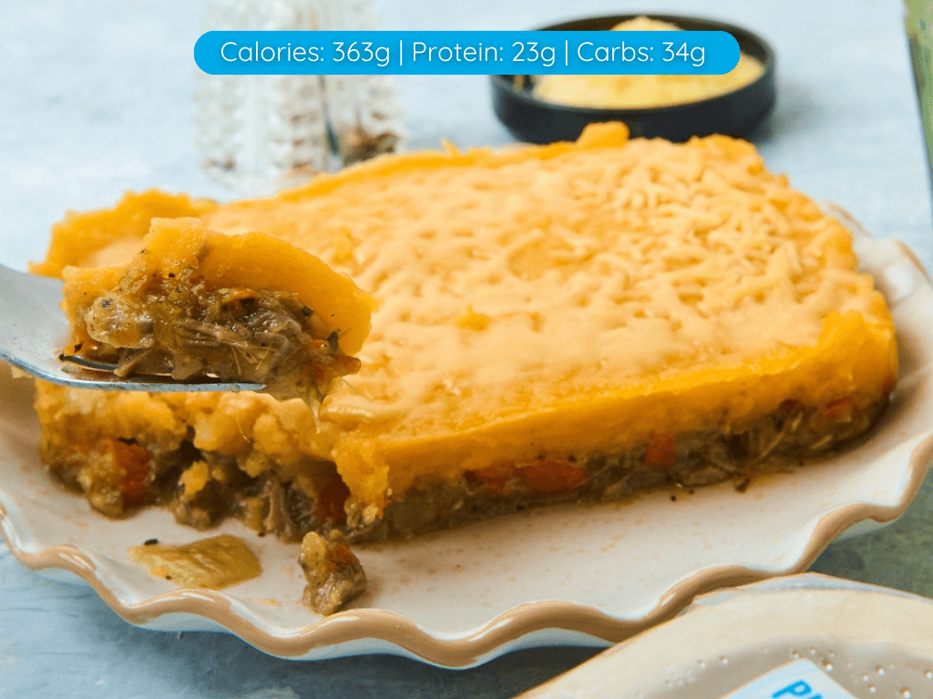 Healthy and Hearty Lamb Pie for a cold winters day. Loaded with slow cooked lamb, sautéed veg and topped with creamy sweet potato mash and parmesan cheese.