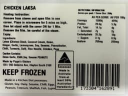 Smooth and creamy Laksa with soft rice noodles, fresh bursting peas and sweet sesame chicken! Delish. Our new favourite. Heat in microwave for 5-6mins, let stand for 1 min. ENjoy
