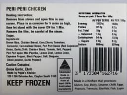 peri peri seasoning [Oregano, Paprika, Lemon juice, Chilli, Black pepper, Salt, Onion, Garlic], Tinned tomato, Basmati rice, Garlic, Salt, Chicken breast, Rice bran oil, Corn kernels, Coriander, Capsicum, Chicken stock