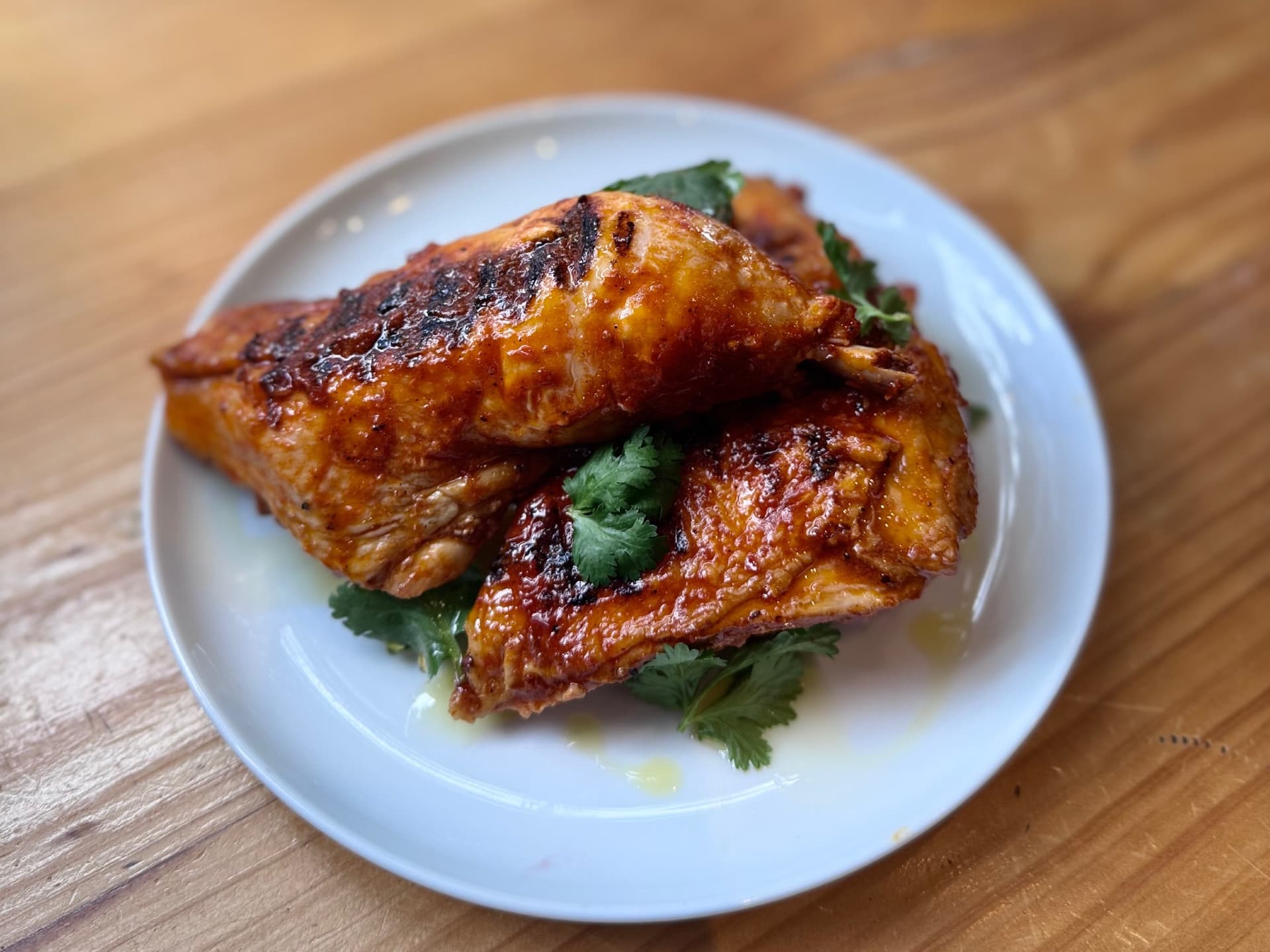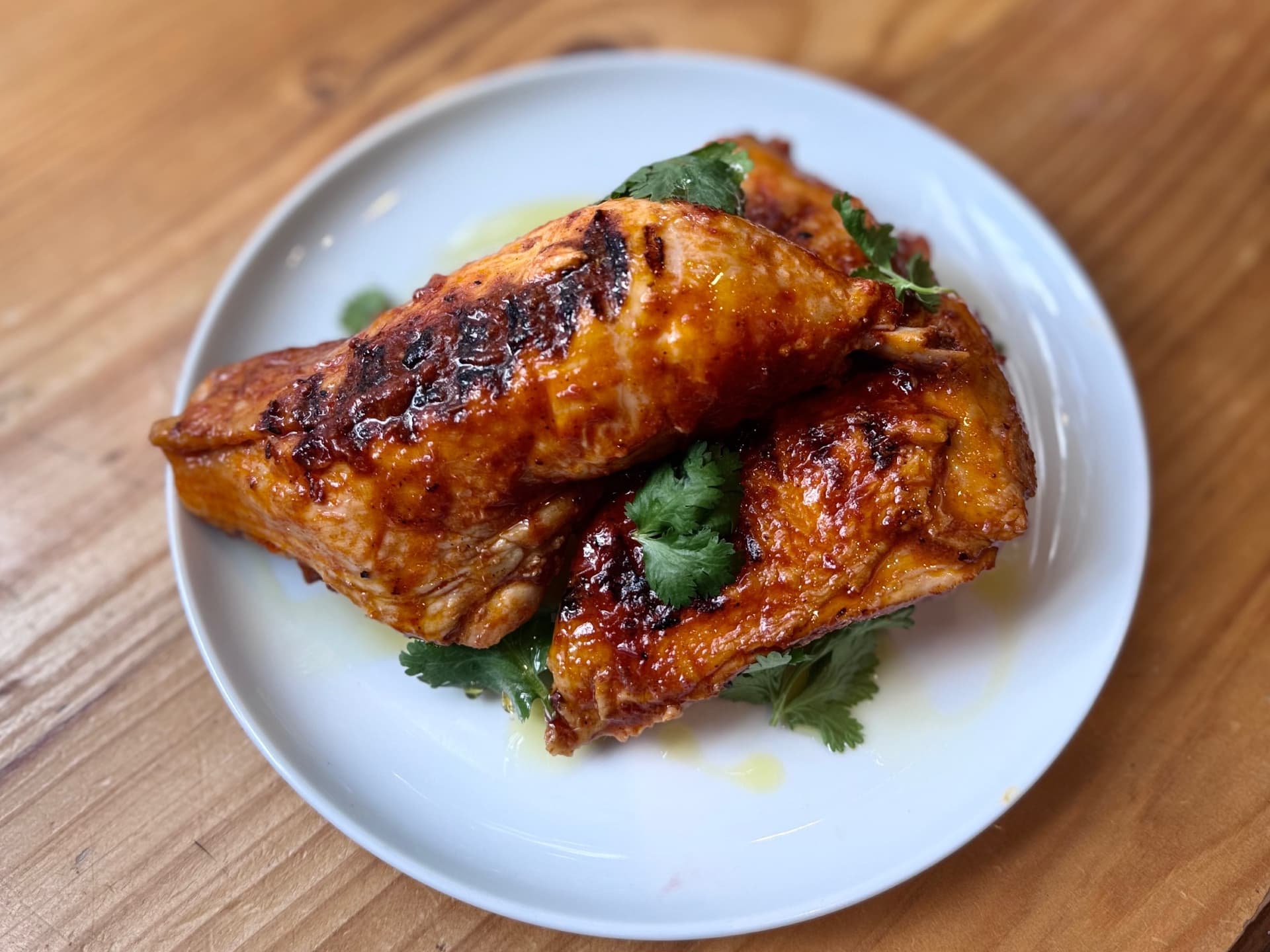 Tender, juicy free-range chicken 12 hour brine and finished with a smoky char from the grill, add NG spicy harissa glaze, this dish offers a perfect balance of heat and savory richness in every bite.
