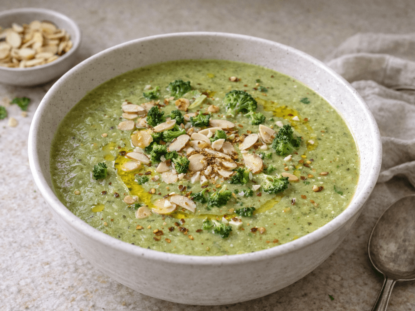 A wholesome blend of of fresh broccoli and toasted almonds, offering a rich, creamy and nutty flavour and packing in all your greens.