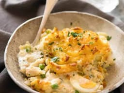 A proper, old-school fish pie — rich, comforting and made the way it should be. Smoked salmon and trevally are gently poached in milk, flaked into generous chunks and folded through a creamy béchamel with onion, carrot, celery, herbs and sweet peas. Topped with hard-boiled egg, finished with fluffy, buttery potato mash and a sprinkle of parmesan, then baked until golden.