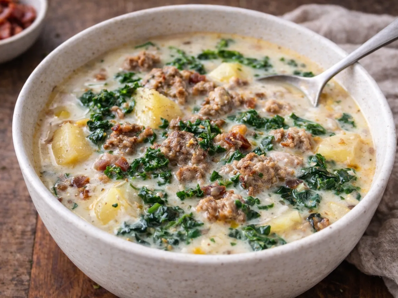 Hearty, rustic Italian soup brimming with savoury Italian sausage, tender potatoes, and vibrant kale, all simmered in a rich, creamy broth with hints of garlic and spices. Perfectly comforting and full of flavour, this classic dish is a warm hug in every bowl.