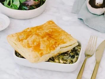 Crowd Pleaser Chicken, Leek & Mushroom Pie Free range chicken, chunky mushrooms, creamy leeks and all topped off with crispy puff pastry.