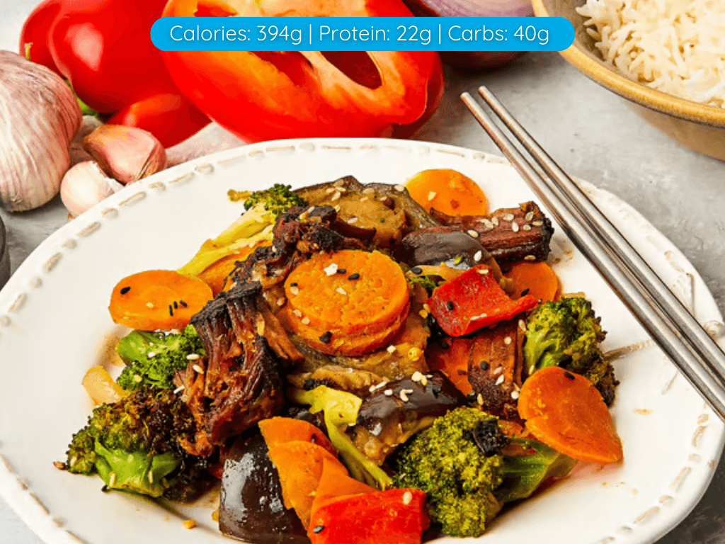 This mouthwatering dish features tender slow-cooked beef infused with a rich and savoury black bean sauce. Loaded with a colourful array of stir-fried vegetables and sprinkled with aromatic sesame seeds, this dish is a feast for the senses. What's more, our Beef & Black Bean Stir Fry Veg is a great option for those watching their carb intake, as it is low on carbs, ensuring a balanced and wholesome meal. Experience the perfect harmony of flavours and textures as each bite unveils the succulent beef, crisp vegetables, and the nutty crunch of sesame seeds. Prepare to be delighted by this satisfying and nutritious culinary creation.