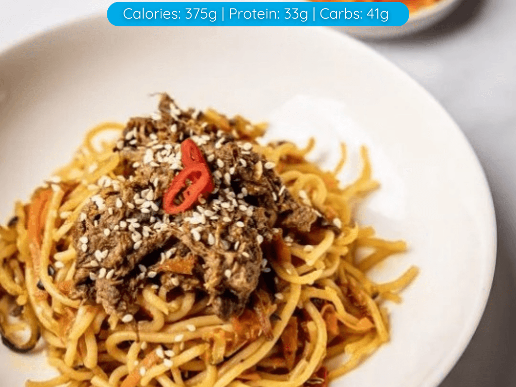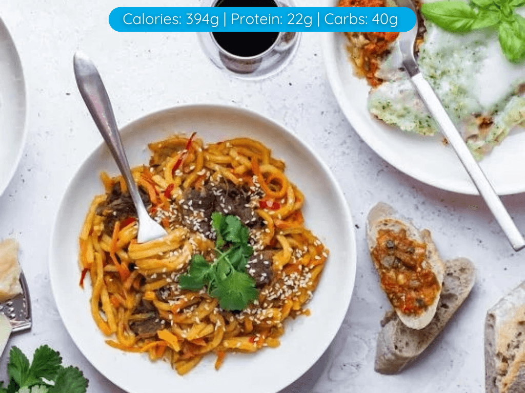 Tray Meal – Frozen – 350g Beef Rump stripes, seared with vegetables and tossed with Hokkien noodles, finished with hoisin sauce. Delish! (400cals)