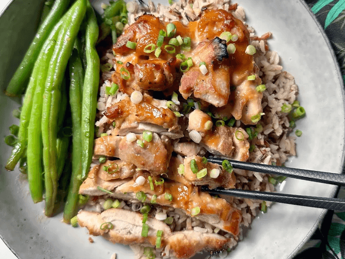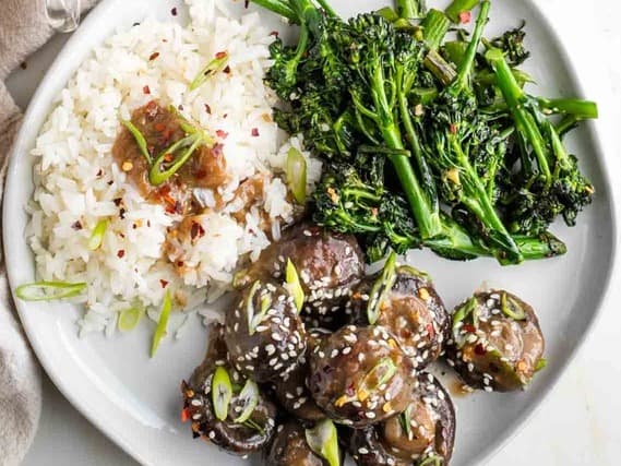 Teriyaki Chicken Meatballs, made using ground free range chicken. Serve these as a meal with rice or pass them around the table as the starter.