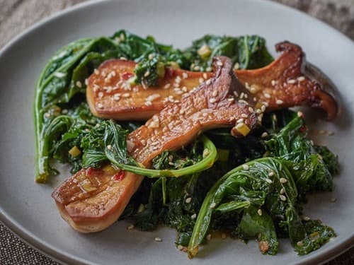 Dive into a dish full of flavor with our Miso Mushroom with Green Vegetables, crafted as a delightful main to share. This savory dish features tender mushrooms and vibrant green vegetables tossed in a rich, umami-packed miso sauce. Just add your favorite rice or noodles to complete this nourishing and satisfying meal.