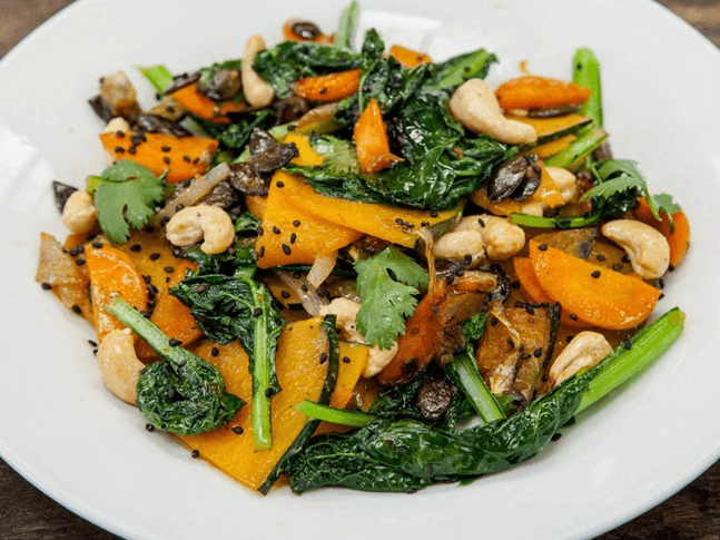 Enjoy our vegan Cashew Pumpkin and Asian Green Stir-Fry.This delightful meal features tender pumpkin, crunchy cashews, and fresh Asian greens, all stir-fried in a savory sauce. Just need to add your rice or noodle to complete the meal.