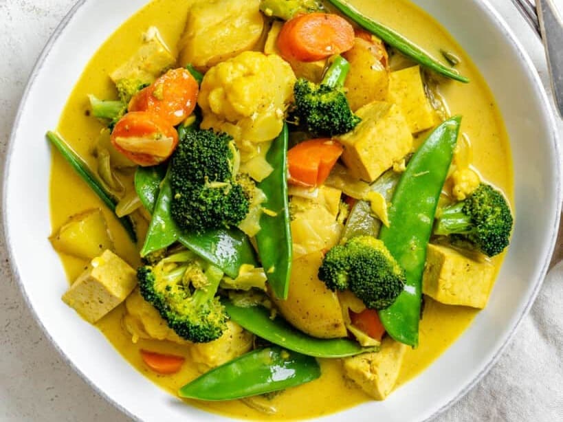 This dish is a delicious and fragrant dish that features a rich, creamy coconut milk-based sauce and an array of fresh vegetables and aromatic spices. This dish is a staple in many Southeast Asian and Indian cuisines. It's served with brown rice. The result is a deliciously flavorful and satisfying dish that is sure to please vegans and non-vegans alike.