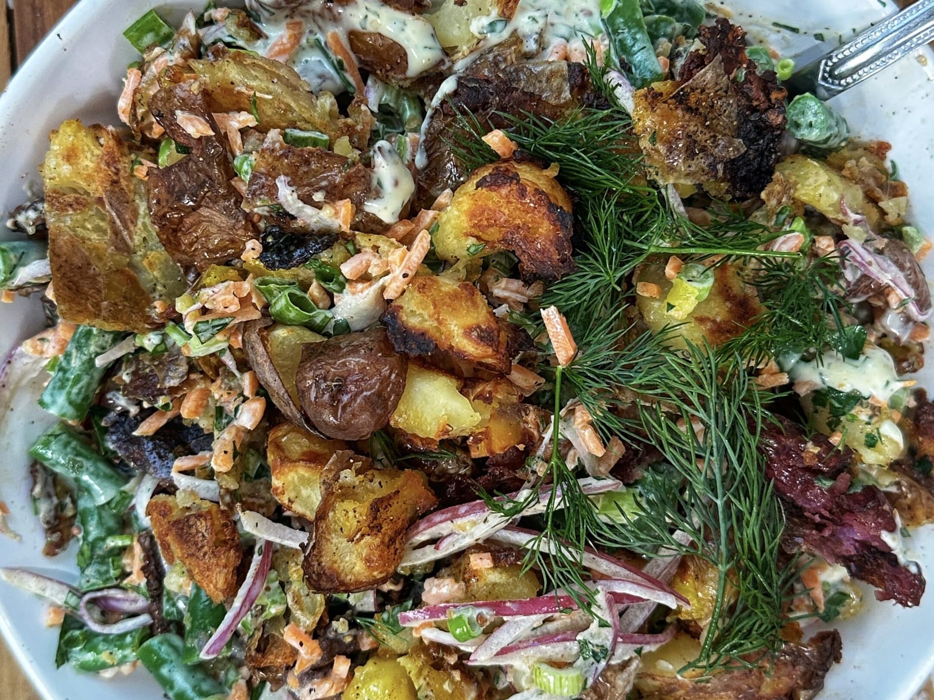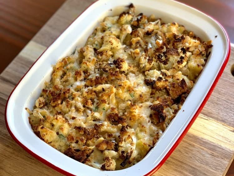 An old school classic mac & cheese, made even better with roasted cauliflower & a heavy coating of our toasted garlic crumb.