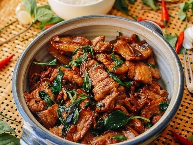 All the local greens we can get our hands on, tossed with succulent pork belly, Thai basil, fresh chilli & gf a sticky sauce to coat!