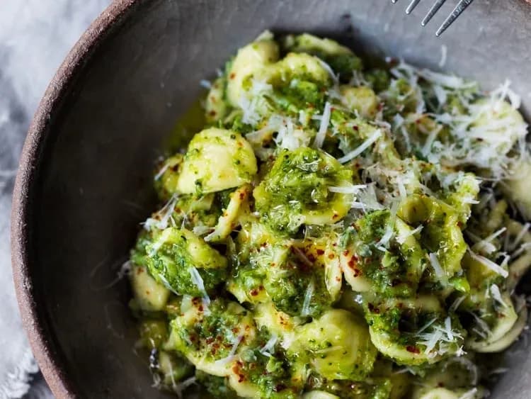Slow cooked chicken folded through our almond basil pesto, spinach, ricotta w cheddar to top!